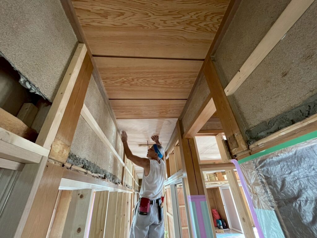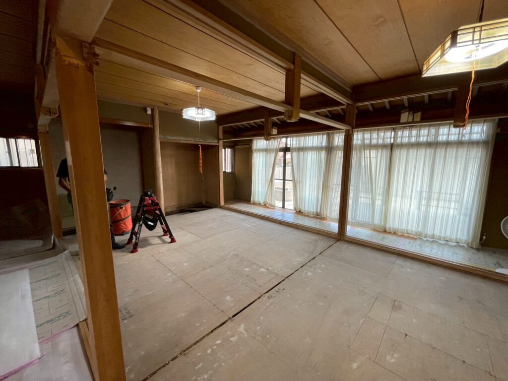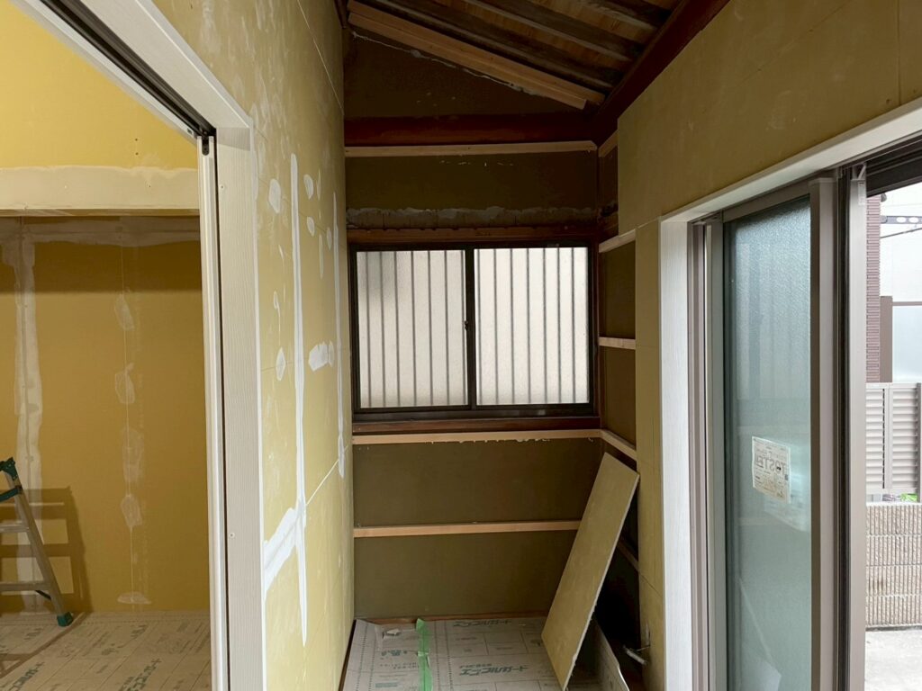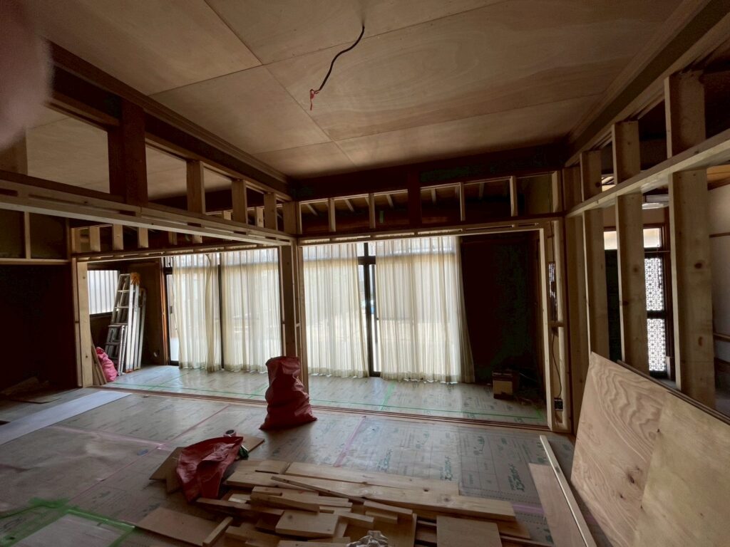 1Fの和室全てフローリングに貼替、壁を作って部屋を仕切り、クロスで仕上げていきます。