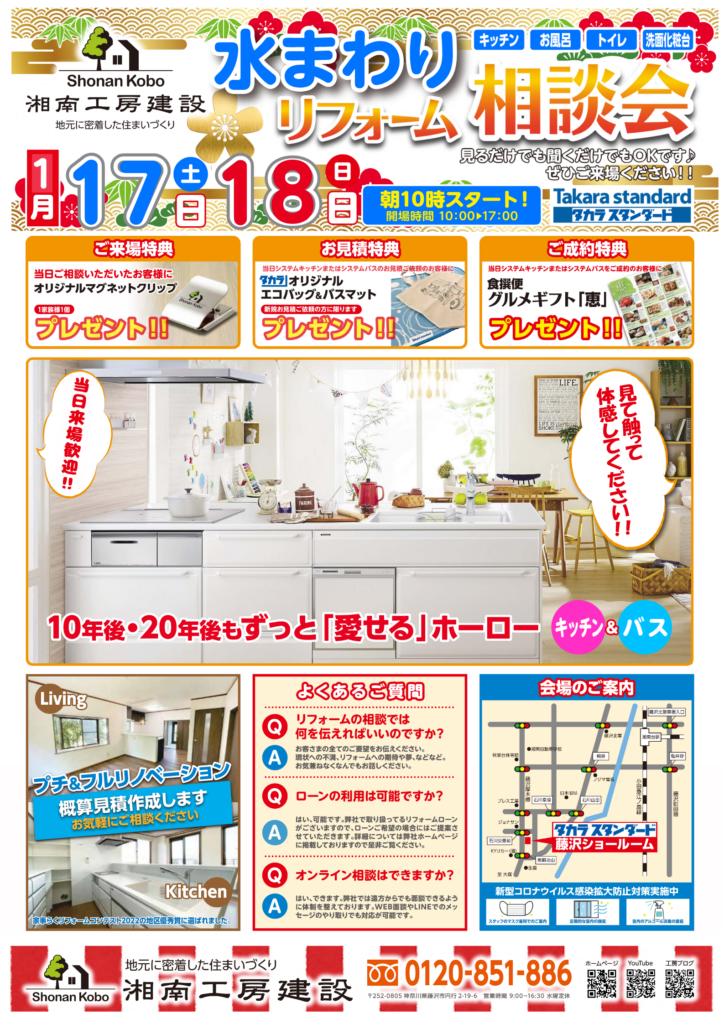 📍:神奈川県藤沢市石川1丁目1-17 タカラスタンダード藤沢ショールーム