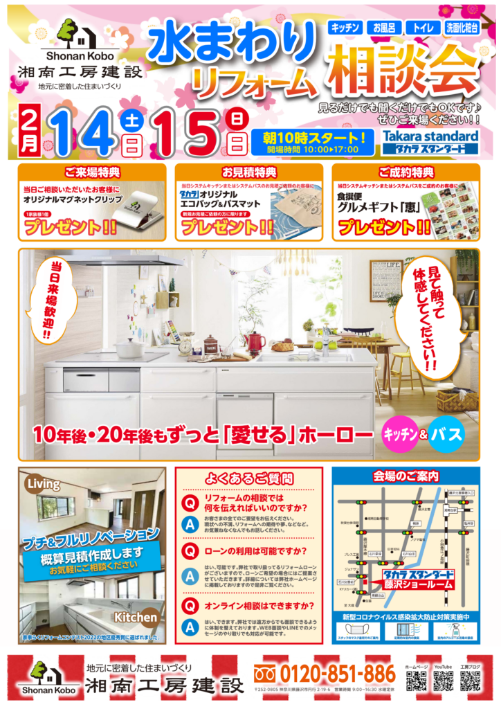 📍:神奈川県藤沢市石川1丁目1-17 タカラスタンダード藤沢ショールーム