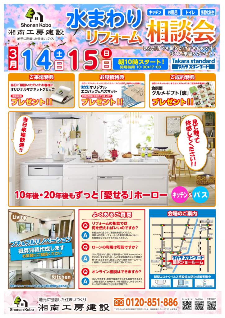 📍:神奈川県藤沢市石川1丁目1-17 タカラスタンダード藤沢ショールーム