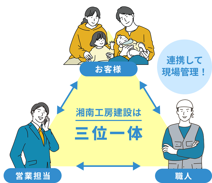 湘南工房建設は弊社の大工はもちろん、女性スタッフも一緒にリフォームプランを作成します。心から納得できる工事にしていただくために、自社スタッフだからこそ工事中のご要望にも柔軟に対応することができます。